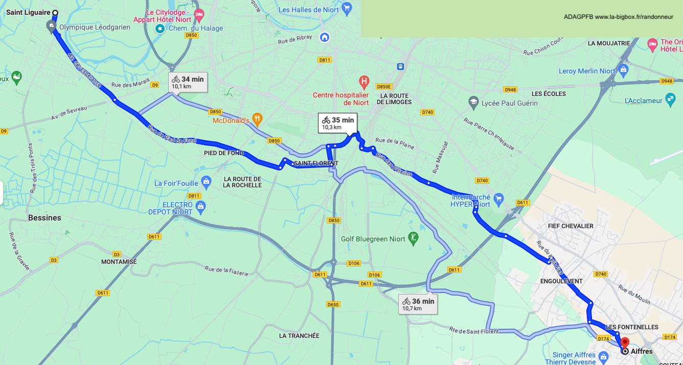 Cet itinéraire à vélo de Saint-Liguaire à Aiffres offre une balade plutôt tranquille et agréable, et décrit en objectifs.